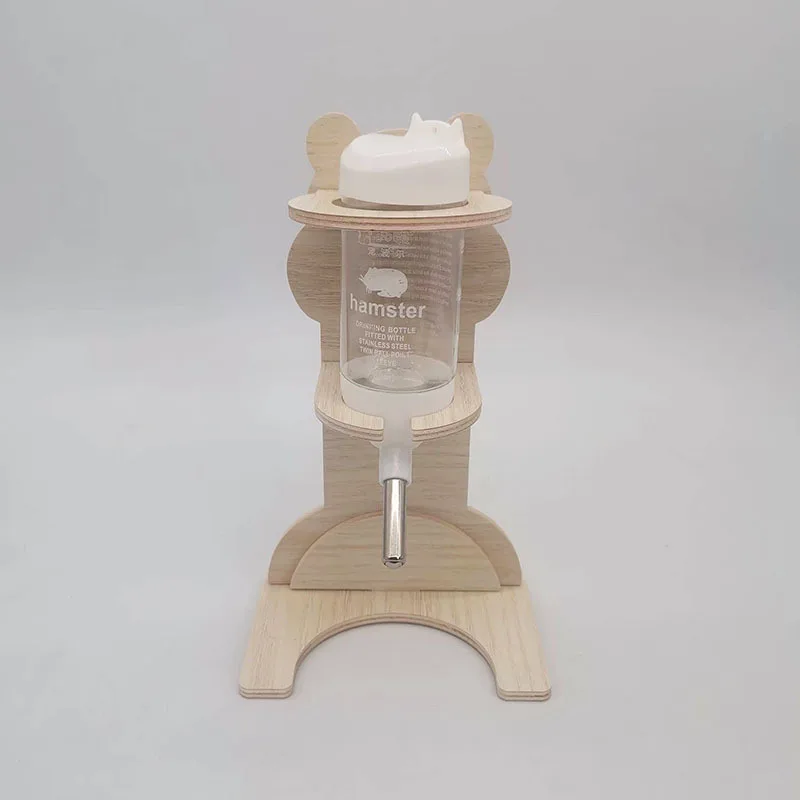 2pcs Set Hamster Ball Water Bottle Rack Golden Bear Vertical Water Bottle Solid Wood Bracket Flower Branch Mouse Water Dispenser