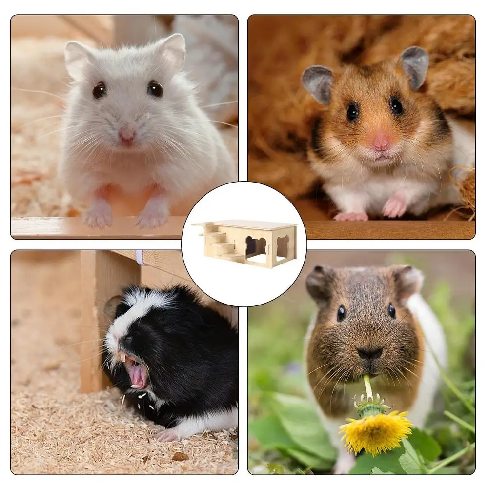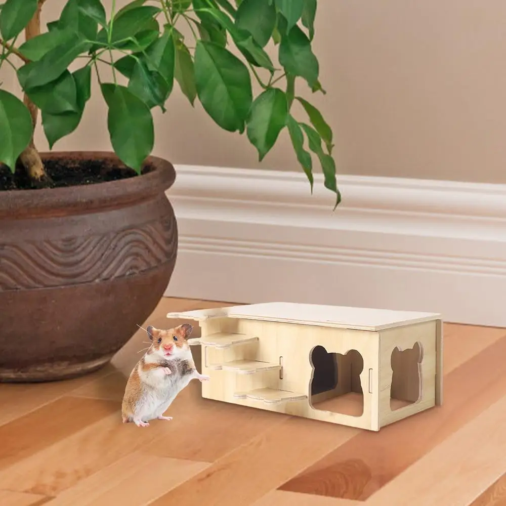 1.Crafted Quality: Our hamster hideout is made of natural wood expertly carved to perfection for a polished smooth, non-irritating, and safe habitat that ensures your pet's comfort and security.